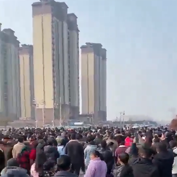 影片顯示,抗議民衆還包圍並衝進了一家政府大樓。當天下午,寧陵縣縣長慄團結出面與羣衆交涉,許多人高喊“殺人償命”。