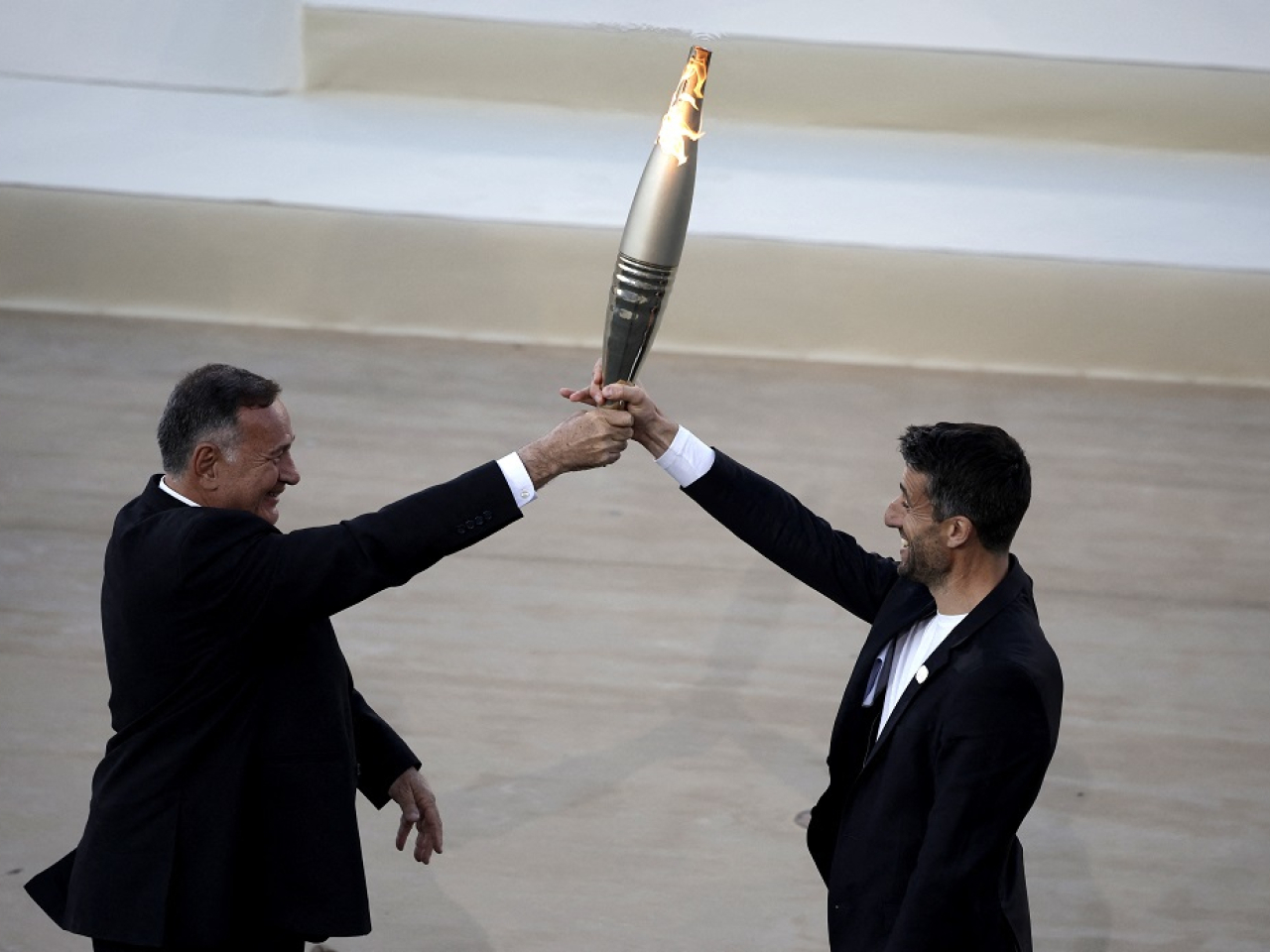 火種交接儀式當地周五在泛雅典體育場舉行,這裡是1896年第一屆現代奧運會的舉行場地,希臘奧委會主席卡普拉洛斯將火種交給巴黎奧組委主席埃斯坦蓋。埃斯坦蓋發言時說,巴黎的目標是舉辦精彩但更負責任的運動會,將有助建設一個更包容的社會。