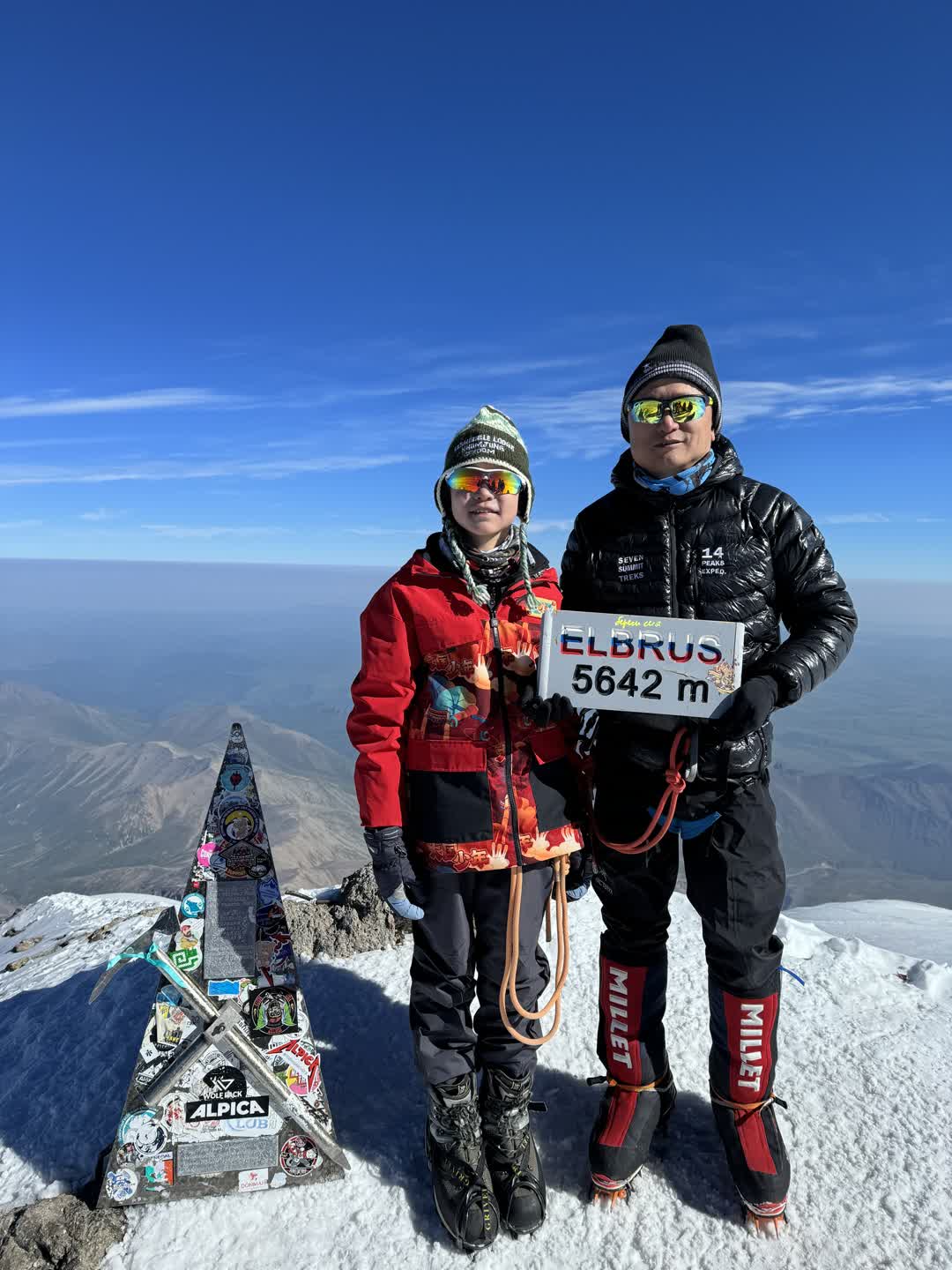 登山愛好者、金海創科技董事長周雙留是成功登頂世界之巔的鎮江第一人,尼泊爾時間2024年5月21日7點30分,他在珠穆朗瑪峰頂展開“8848”的旗幟。珠峰之前,他攀登過四姑娘山二峰、玉珠峰、慕士塔格峰、馬納斯魯峰。在他的影響帶動下,周驛宸9歲開始嘗試登山,第一次登頂的是四姑娘山大峰,去年10歲時又攀登了四姑娘山中的二峰。