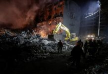 澤連斯基發布的照片顯示,遇襲的1棟九層樓公寓建築局部外牆墜落、窗戶破裂,建物的殘磚碎瓦掉落在街道上。他補充說,搜救行動正在進行中。