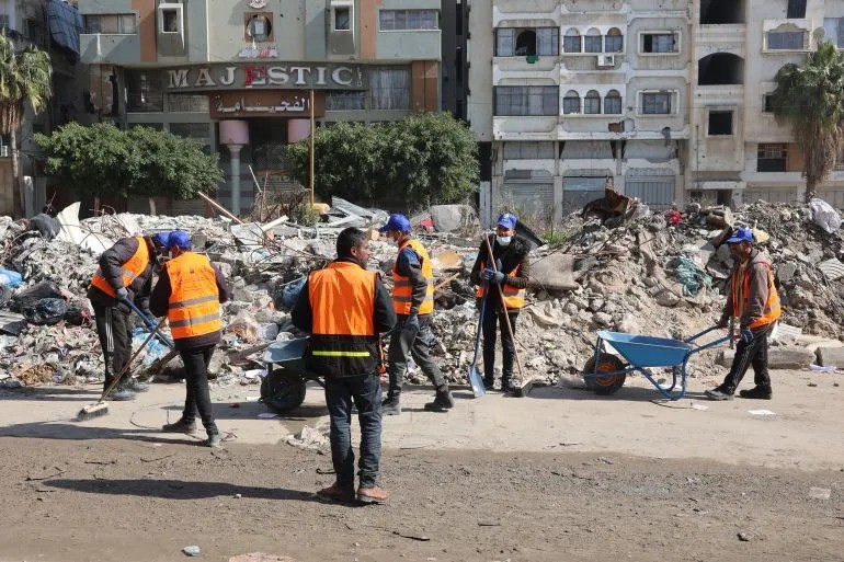 2025年2月20日,哈馬斯武裝人員在加薩南部汗尤尼斯移交4名以色列俘虜遺體期間
