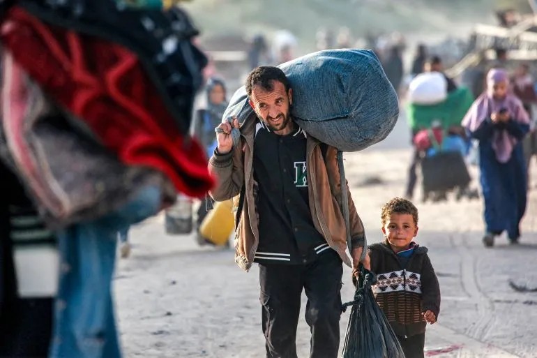 照片:巴勒斯坦人逃離以色列對加薩北部拜特哈農的攻擊