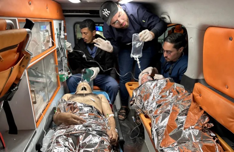 圖:在以色列空襲「安全區」期間受傷的巴勒斯坦人被送往醫院