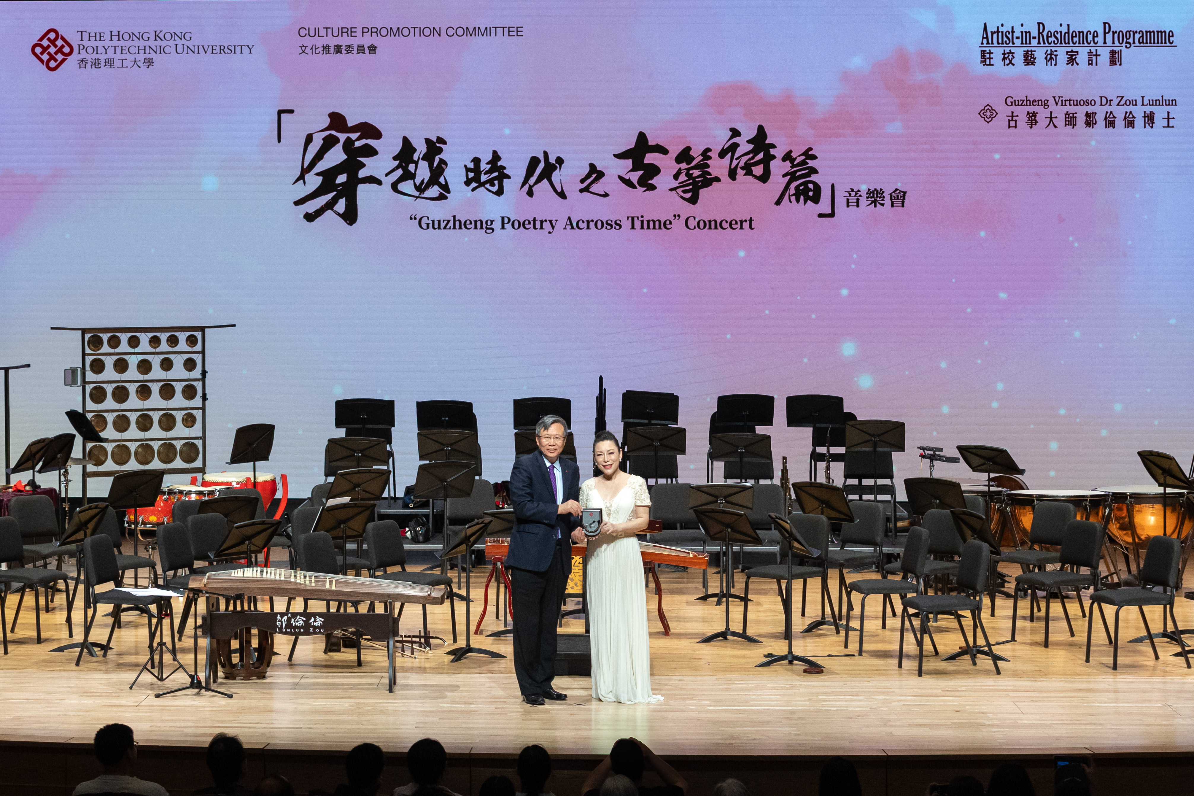 值得一提的是,計劃今年首次公開招募中國樂器演奏者,經過嚴格遴選,十一位入圍者將在音樂會中表演,展示他們的學習成果。滕校長代表理工大學頒發獎牌給鄒倫倫博士,以表達對她專業指導的感謝,並期待此次活動能進一步提升理大社群的藝術文化素養。