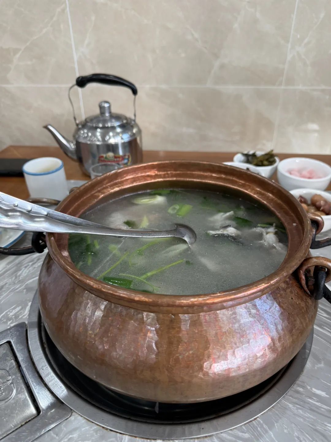 赴羅府約時遇打車風波。司機見我唇含雪糕,一句“弄髒車廂”如冰錐刺入暖陽。幸而轉車脫困,終抵友人雅舍。見他自紫陶罐珍重取出一餅老普洱,茶刀輕啟時,陳香似蟄伏的歲月驟然蘇醒。“這茶與我同庚。”他笑言。紅棉紙包裹的茶餅遞來時,分明是十餘載情誼的結晶。琥珀茶湯入喉,溫厚茶氣頃刻融解心頭霜淩。晚宴設於“老銅鍋魚”店,牆繪古滇國魚紋盤桓,銅鍋沸浪翻滾江川舊夢,魚躍湯沸間,千年漁火在蒸氣裏明明滅滅。