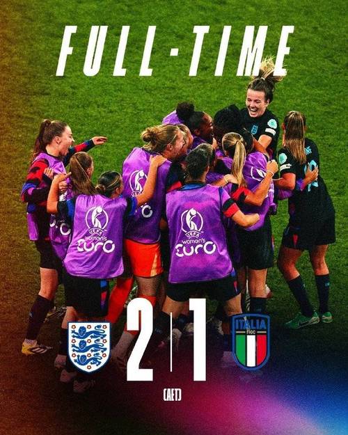 7月22日,女足歐洲盃衛冕冠軍英格蘭憑著強勁的實力加上不錯的球運,在加時即將結束前僅僅1分鐘獲得點球,由傳奇女球王凱利打入鑽石般寶貴的入球,助英吉格蘭女足淘汰意大利女足,如願以償闖進決賽,將與西班牙女足爭奪本屆冠軍!