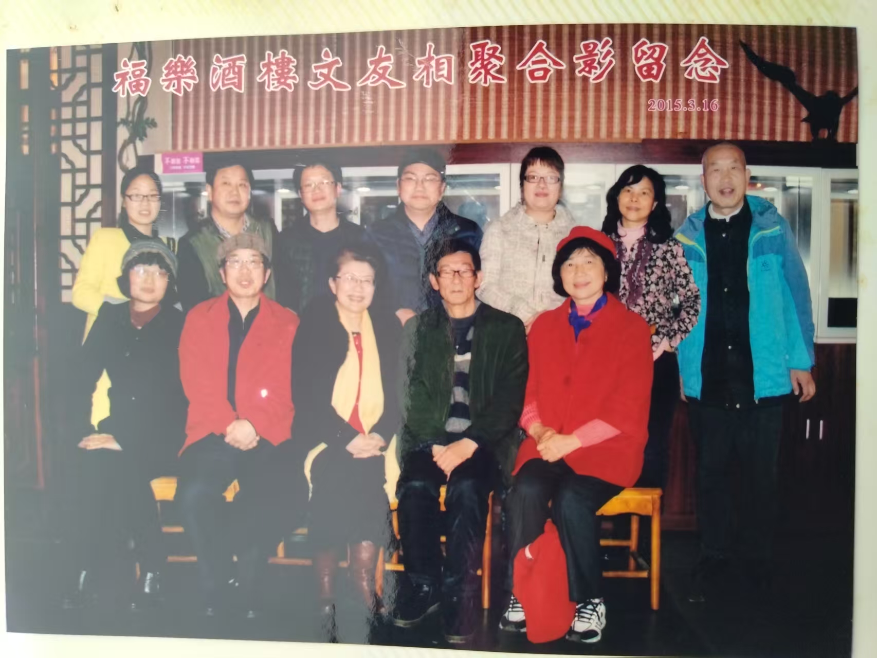 隨之,許小玲手捧一條鮮豔的紅領巾,眾人不約而同立正站立,舉起右手五指併攏行了一個少先隊隊禮,又將盛滿茶水的杯子高高舉起,共同回應左一兵老師由衷祝願:不論“40後”至“90後”,讓我們手挽手、肩並肩一如既往地熱愛勞動、生活; 熱愛學習、詩歌;發揚“紅領巾”精神;牢記崇高的信念;時刻張開歲月的臂膀,蕩起青春陽光的雙槳;堅持筆耕不綴、奮力揚帆遠航,做一名新世紀文學傳播的忠實守護人。