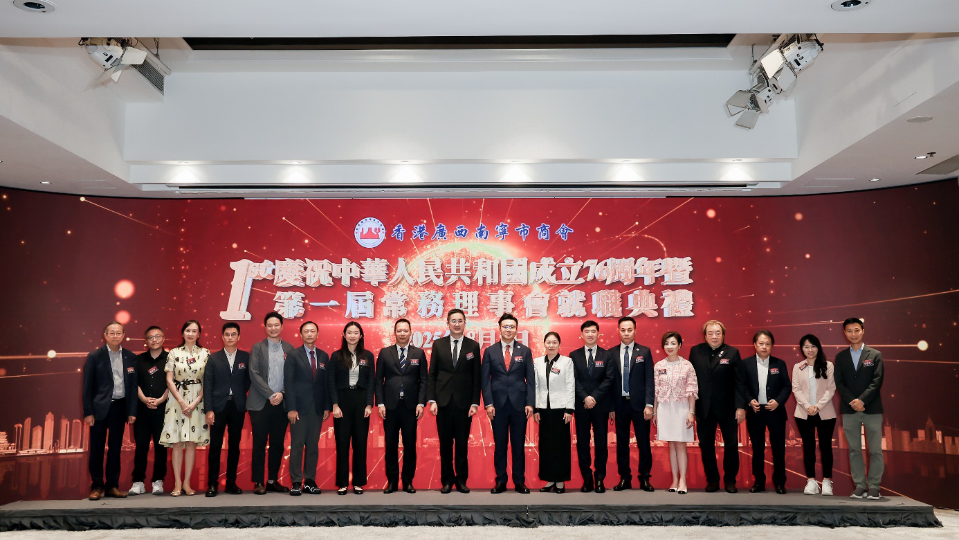 香港廣西南寧市商會第一屆常務理事會就職典禮暨晚宴於8月8日晚假紅磡海韻軒海景酒店天澄閣隆重舉行,特區政府商務及經濟發展局副局長陳百里,政制及內地事務局副局長胡健民,中聯辦新界工作部處長李偉希,南寧市海外聯誼會副會長何見霜,香港廣西社團總會常務副會長林梓軒,香港廣西南寧市商會創會會長何永輝,商會常務副會長、籌委會主席彭文慧等出席主禮,約五百位商界翹楚、社團代表、各界嘉賓及義工出席,共同見證商會正式成立及首屆常務理事會就職。