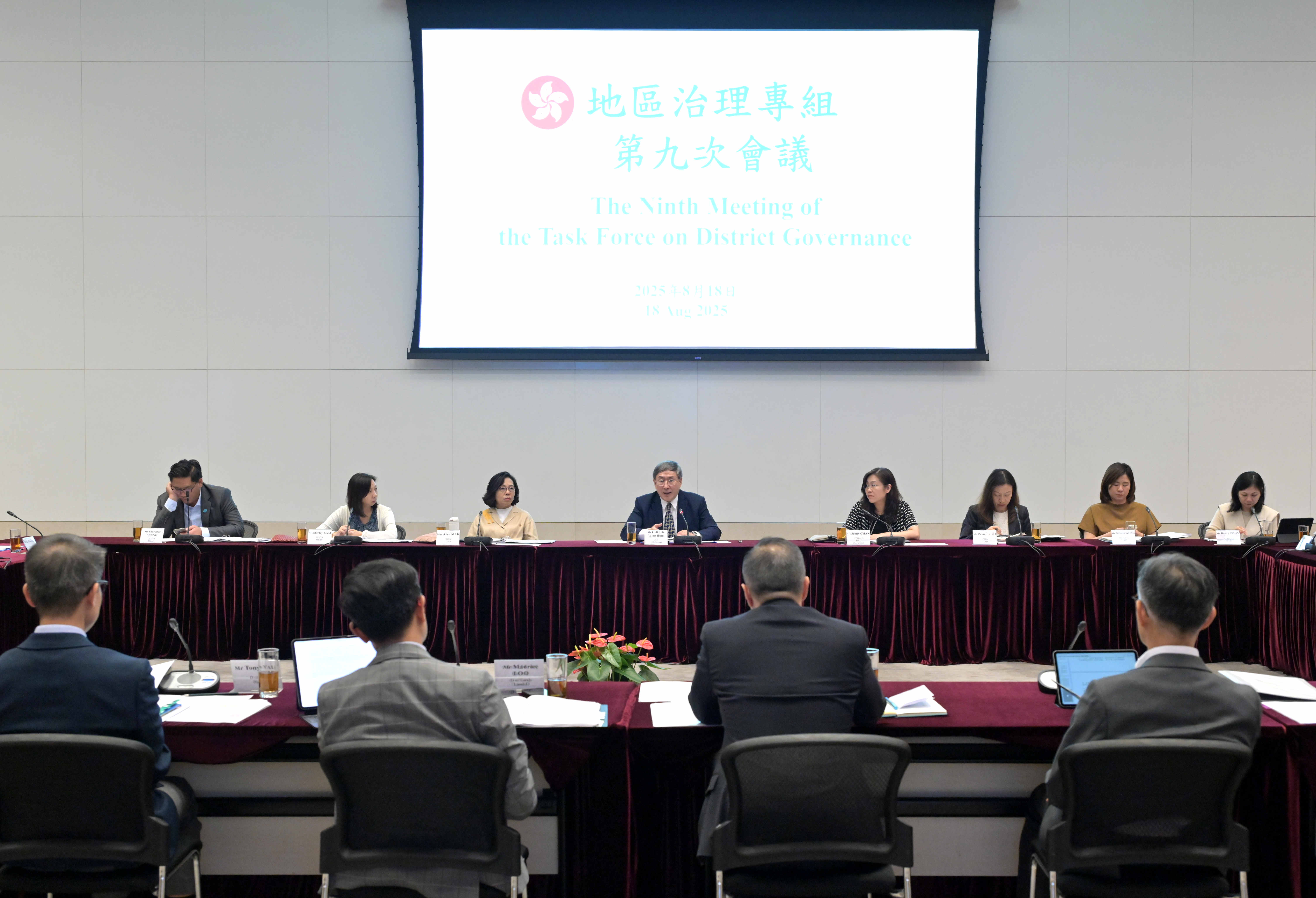 (中華新聞通訊社/中華時報 8月18日訊)政務司副司長卓永興今日(八月十八日)主持「地區治理專組」第九次會議,按照「地區治理領導委員會」交付的工作,統籌各部門就地區關注的議題制定具體落實措施,並持續檢視工作進度和績效。