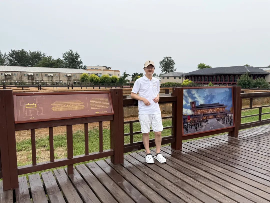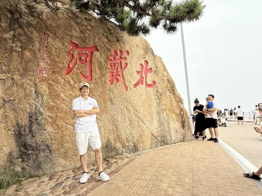下午李夫人先接回病貓後,便駕車送我們至北戴河金山嘴。秦皇行宮遺址在七月封路安檢之後才得見真容,巍然橫臥山間,饕餮紋瓦當零落,菱格青磚沉默,長逾三十米的宮牆石礎雖沉默無言,卻似講述著昔日皇家威儀。遙想始皇東巡碣石,車馬喧騰,旌旗蔽日,何等煊赫!然而“萬里長城今猶在,不見當年秦始皇”,宮闕巍峨終被時光蝕為空寂的基石;昔日深宮高牆,終究被歲月剝蝕為遊人足下的殘跡。唯有遠處老虎石靜臥於海濤之間,如群虎蟄伏,見證了更悠久的傳說。