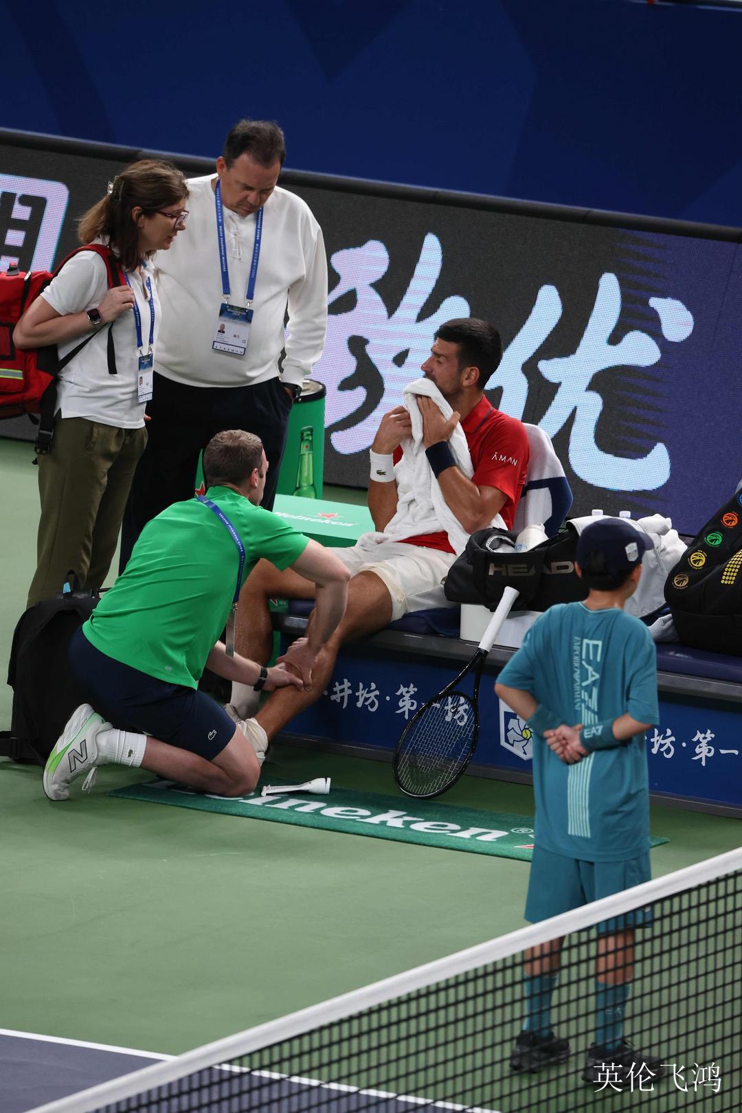 比赛中,上海的高温与湿度极大考验球员体能。德约在丢掉第二盘后因体力不支倒地,并短暂接受医疗暂停。