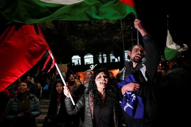 意大利主要工会积极支持这些抗议活动。该国码头工人威胁要罢工,原因是以色列军队阻止全球萨穆德船队向加沙运送援助物资。