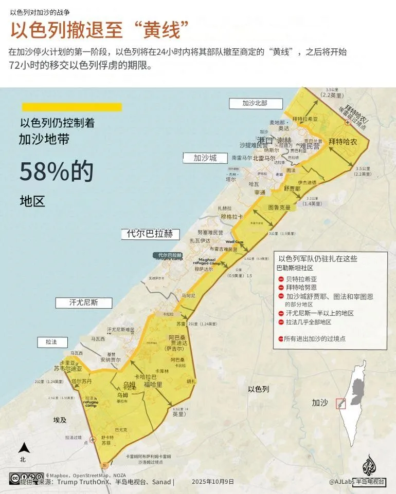 他还补充说,该协议将要求哈马斯解除武装,如果哈马斯不这样做,“以色列将采取行动,然后黄线将会缩小。”