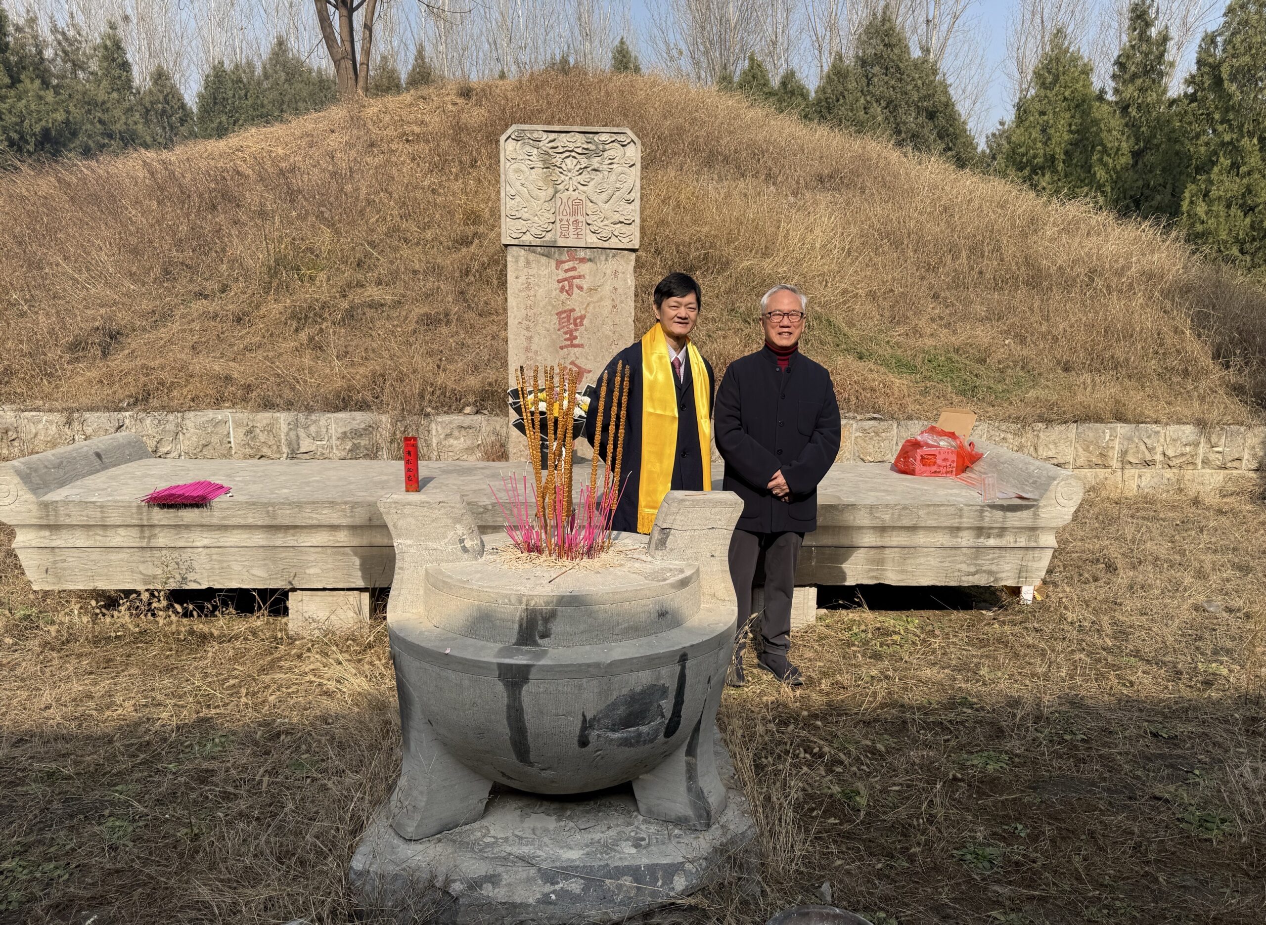 时维乙巳仲冬(公元二零二五年十一月卅日),天朗气清,余以曾氏宗亲联合会名誉会长携四海宗亲归赴嘉祥故里,共襄宗聖曾子二千五百三十载诞辰祭典。庙前古柏参天,苍翠俨然;阶下衣冠济济,肃穆如仪。谨缀文记盛,赋诗明志。