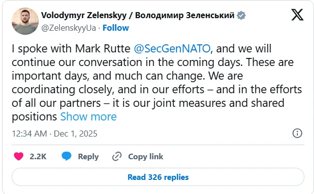 這位烏克蘭總統在上週日表示,他與北約秘書長馬克·呂特通了電話,並指出:“現在是關鍵時期,很多事情都可能發生改變。”