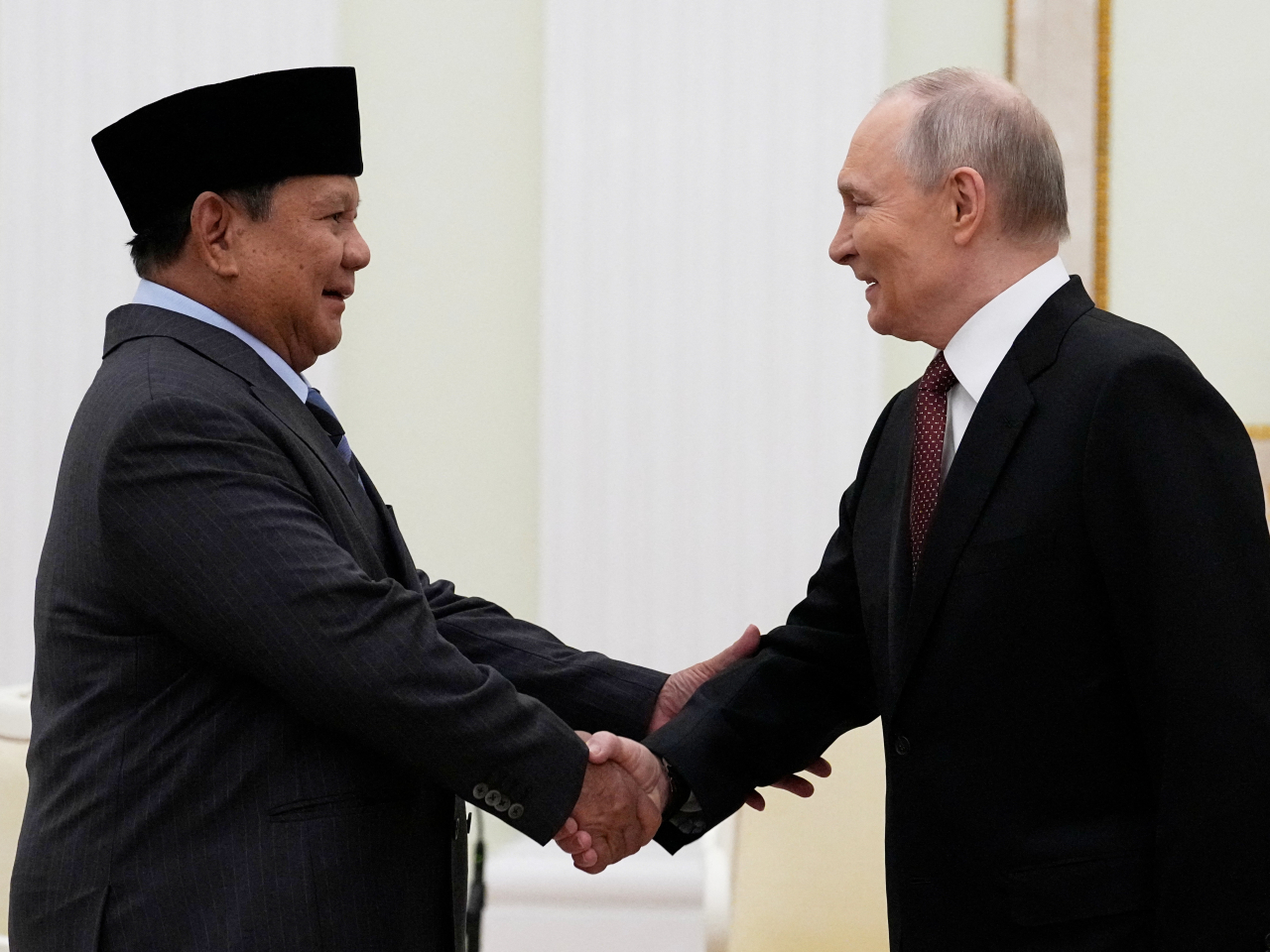 印尼總統普拉博沃訪問俄羅斯,與總統普京會談。普京說,兩國在經貿和軍事等領域的關係良好。