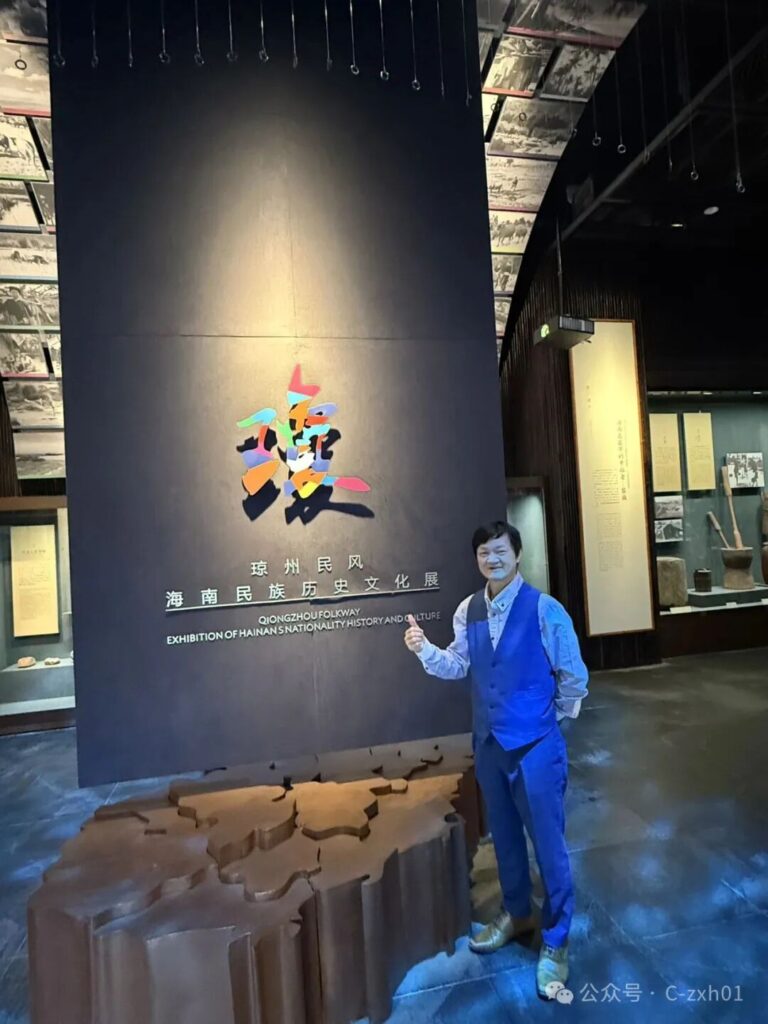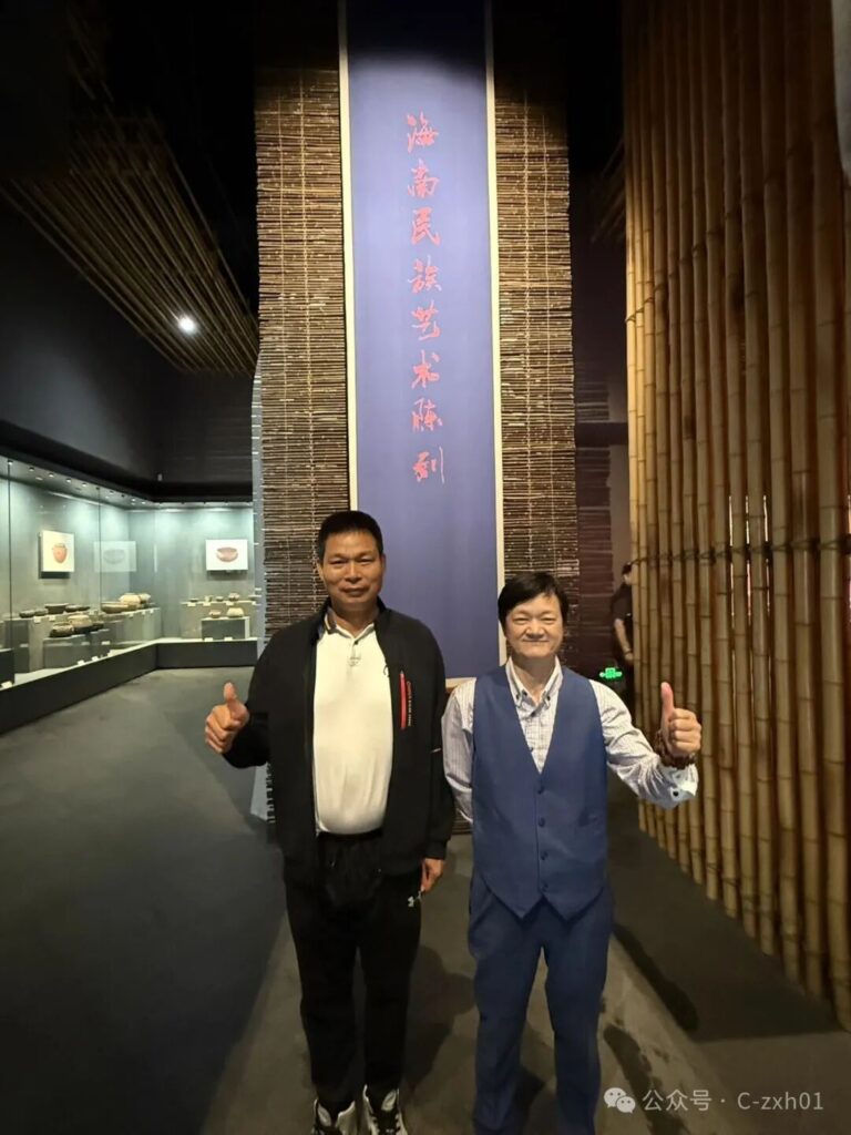 抵約處,黃君未至。忽見「海南博物館」路標斜指,遂轉舵循跡,不期開啟民族秘鑰。甫入海南民族博物館,黎錦的熾烈、苗銀的冷冽、船形屋的滄桑、圖騰柱的玄奧,瞬間將時空折疊,遠古跫音踏浪而來。正凝神於一枚骨雕的洪荒印記,身後笑喚破空——黃君攜風塵至矣。