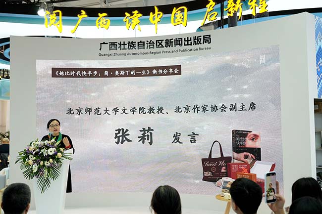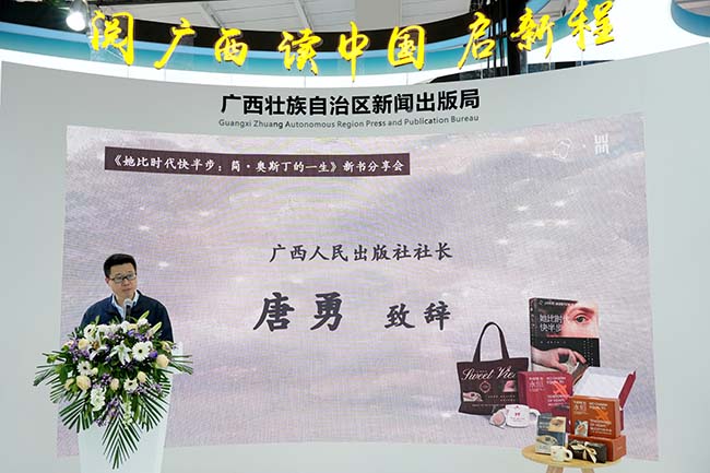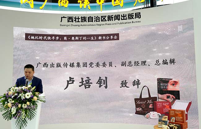 廣西出版傳媒集團黨委委員、副總經理、總編輯盧培釗在致辭仲介紹了北京新知了出版諮詢有限公司成立的背景與集團佈局全國文化市場的戰略考量。新知了公司立足北京,實施精品戰略,力爭形成強有力的人才中心、資源中心和行銷中心。他表示,北京新知了作為集團啟動出版活力、打破地域局限的重要舉措,此次攜手廣西人民出版社推出的新書及紀念禮盒,通過南北協同運營模式,實現了文學價值與生活美學的完美融合。盧培釗強調,簡・奧斯丁作品中蘊含的永恆人性光輝與超前獨立思想,是其跨越百年依然暢銷的核心原因,而本書憑藉權威譯者加持與多位學者連袂推薦,確保了內容的專業性與可讀性,堪稱值得永久收藏的經典傳記。他期待北京新知了以本書為起點,推出更多兼具思想深度、藝術價值與市場潛力的優質產品。