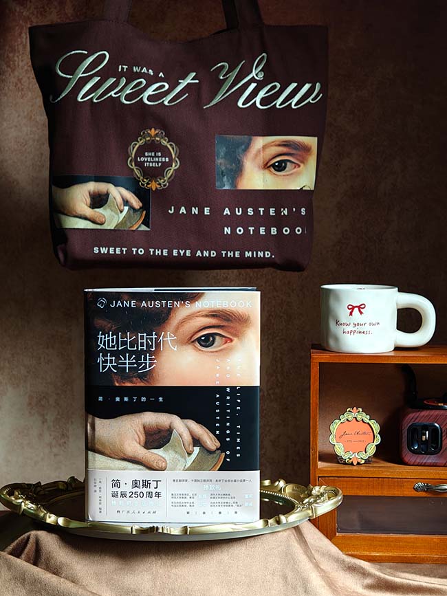 同步亮相的“永恆:她比時代快半步——簡・奧斯丁誕辰250周年紀念禮盒”,是國際知名設計師操刀設計的限量典藏之作。禮盒以奧斯丁“追求獨立與自由”的精神內核為靈感,萃取其小說經典名句,轉化為兼具“簡式”雋永風格與現代美學的日常雅物,內含Sweet View經典托特包、Your Own Happiness手捏馬克杯、Know Myself相框冰箱貼三款精緻文創,將文學智慧融入日常生活,成為現場備受矚目的文化藏品。