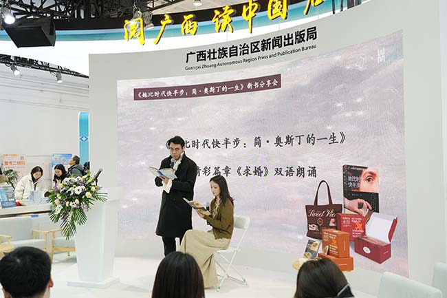 活動尾聲,來自北京新知了出版諮詢有限公司的兩位工作人員以中英雙語形式,深情朗誦了本書精彩章節《求婚》,用優美的語言再現簡・奧斯丁筆下的情感張力與文字魅力,為本次分享會畫上圓滿句號。