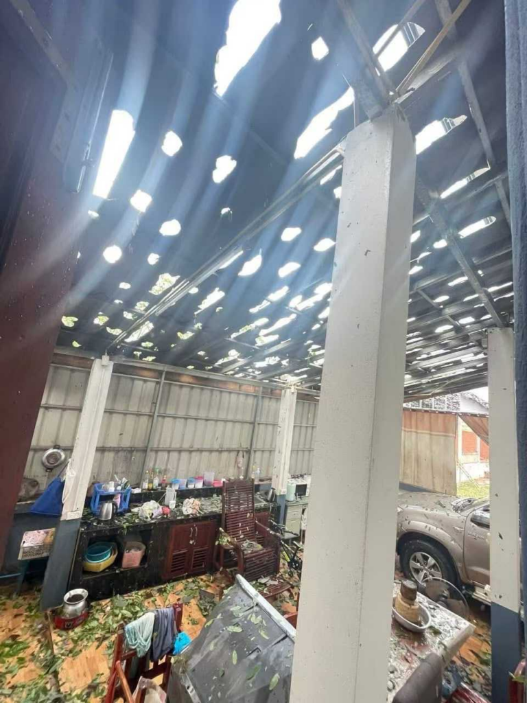 民房受損: 大面積瓦房和簡易房頂被砸穿,不少居民家中出現漏雨現象,傢俱物資受損。