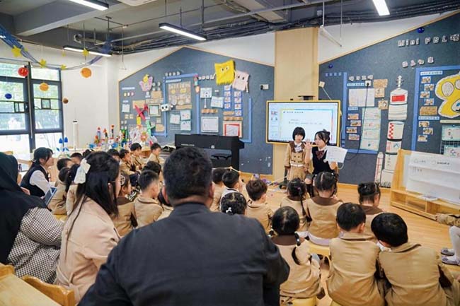 随后,代表团分组走进班级,实地观摩了三场STEAM教学活动。从情绪认知到工程探究,从科学原理到动手实践,孩子们专注的探究状态与教师以问题为导向、以儿童为中心的教学设计,生动呈现了探究式学习的真实样态。马方教育者表示,这种将STEAM理念自然融入幼儿日常学习的实践方式,具有很高的借鉴价值。