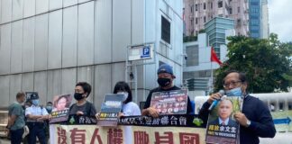 支聯會等團體到中聯辦外抗議 促釋放被拘留12港人...