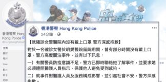 香港警方就确诊女警无戴口罩深感抱歉