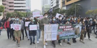 香港多个地区出现示威抗议港府指定多处抗疫诊所