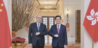 香港行政長官李家超與新任中聯辦主任鄭雁雄在禮賓府...