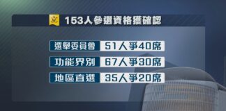 香港153名立法會選舉候選人資格有效 1人無效