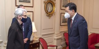 舍曼晤秦刚 舍曼欢迎秦刚来到华府