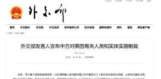 外交部宣布中方制裁英方9名人員和4個實體 前保守...