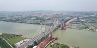 (粵港澳大灣區)深江鐵路跨磨刀門水道主橋首個主塔...