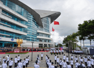 為慶祝香港回歸祖國28周年:灣仔金紫荊廣場舉行升旗儀式 ...