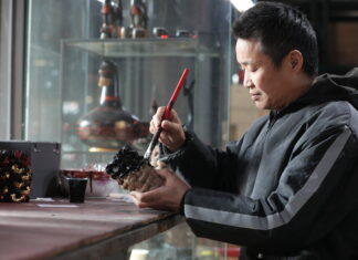 中新社湖北荊州4月13日電 題:楚式漆器綻華彩 東...