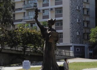 香港中文大學清晨移走校園內的民主女神像,嶺...