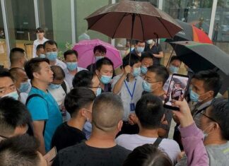 九月中,愤怒的债务人在恒大深圳总部进行维权。 ...