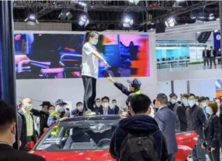 上海车展首日,特斯拉以让人意外的形式火了:一女子身...