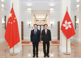 行政長官李家超在禮賓府與新任中聯辦主任、國...