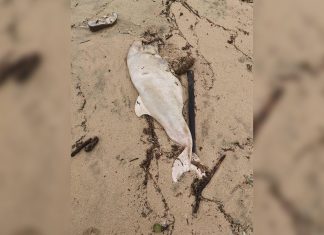 一條中華白海豚的屍體被發現在貝澳的海灘擱淺...