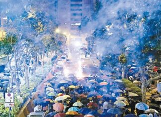 继平安夜香港多处爆发示威者抗议,尤其是在尖...