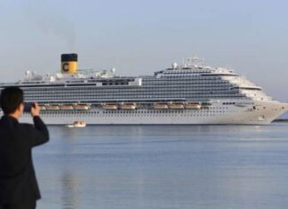 武汉肺炎疫情延烧,停泊在意大利港口的一艘邮轮1...