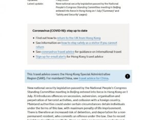 英國和加拿大更新對前往香港的旅遊建議,表示...