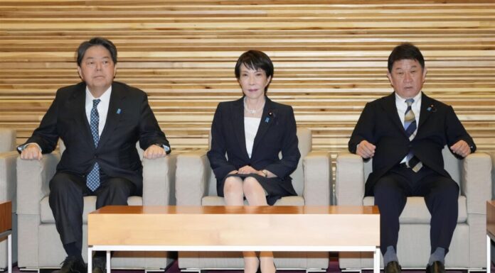、首相高市早苗(中)、外交大臣茂木敏充(右)20日在首相官邸參加內閣會議。(共同社)-696x385.jpg)