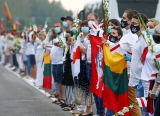 立陶宛筑起30公里人墙 总统加入5万人支持自由的白俄罗斯...