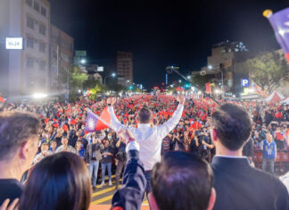 (中華新聞通訊社/中華時報11月26日訊)國民黨總統參選人侯友宜、副總統參選人趙少康今(26)日台南成立競選總部成立,並舉辦造勢大會,現場湧入超過三萬名鄉親,爭相為侯友宜加油,...