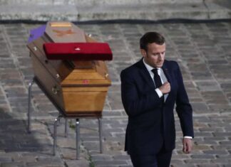 法国总统马克龙在追悼惨遭杀害的历史老师活动上表示不...
