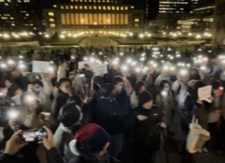 週一(11月28日)晚,紐約哥倫比亞大學校...
