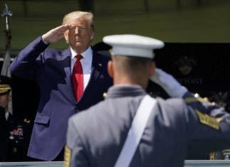 刚刚过完74岁生日的特朗普上周末在西点军校讲话后步...